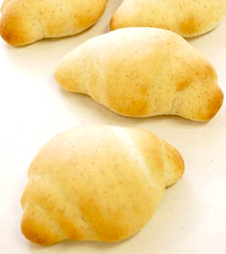 生地にバターを巻きこんだロールパンをバターロールと呼びますが、ウルでは最小限のバター、全粒粉を15%入れて、シンプルな味わいに仕上がります。そのままお食事としてや、サンドウィッチにしたり、ジャムをつけたり、何でも良く合います。定番のレパートリーにもなりますよ。