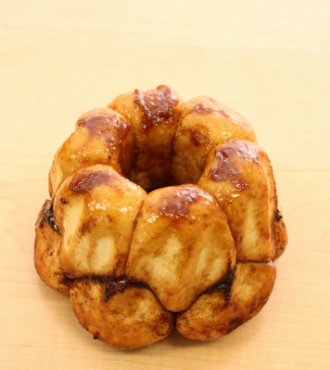 ちぎりながら食べられるモンキーブレッドが登場です。今回はコクのあるブラウンシュガーとシナモンをブレンドしたシロップに絡めて焼き上げます。