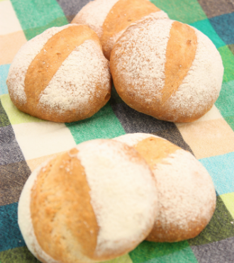今回は米粉をブレンドし、モチモチな食感の、ほんのり甘みのあるパンです。そのままでも、サンドイッチにしても美味しいです。