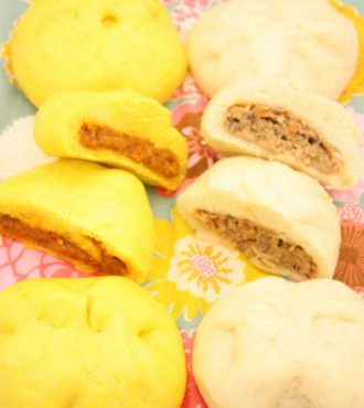 ジューシーな肉まんと、ルウは使わずに作るキーマカレーマンの2種類。蒸したてはもちろん、冷めてからも美味しいパン生地で作ります。
