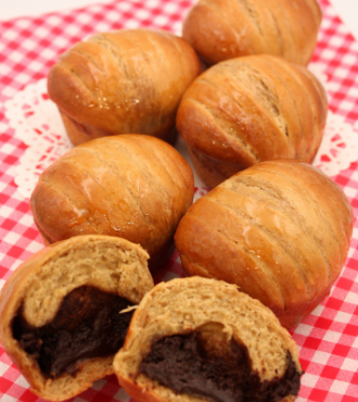 ブリオッシュは卵やバターを練り込んだリッチな配合のパンです。ココア風味の生地で、手作りの生チョコを包みます。